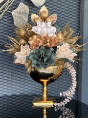 Yapay Çiçekli Gold Kare Ayak Vazo No:7
